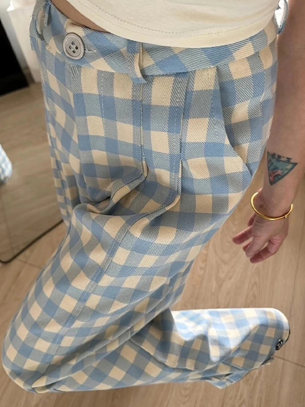Blau karierter Anzug im Yamamoto-Stil mit weit geschnittener Hose