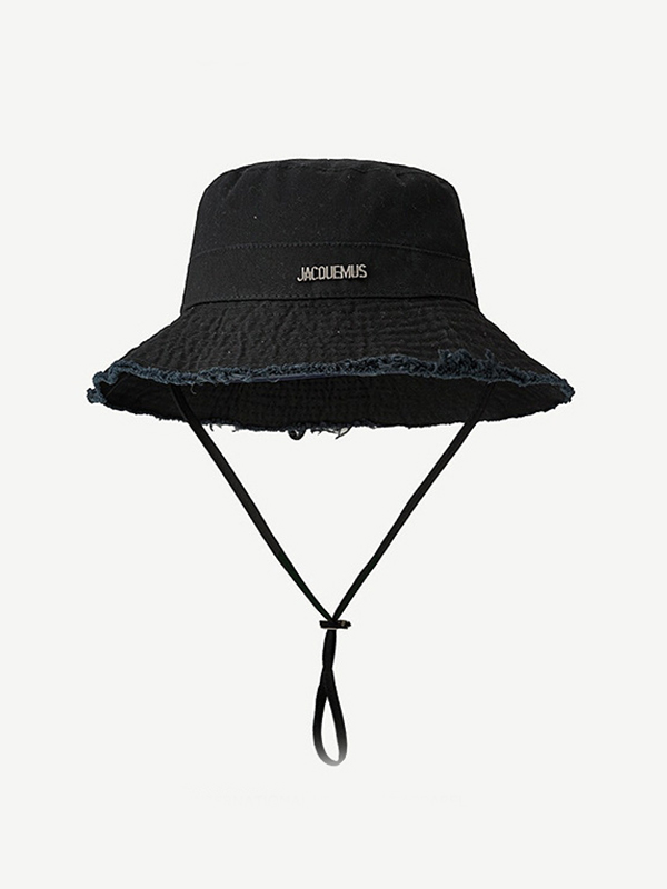 Verstellbarer Fischerhut aus massivem Metall mit Buchstabendekor und rohem Besatz