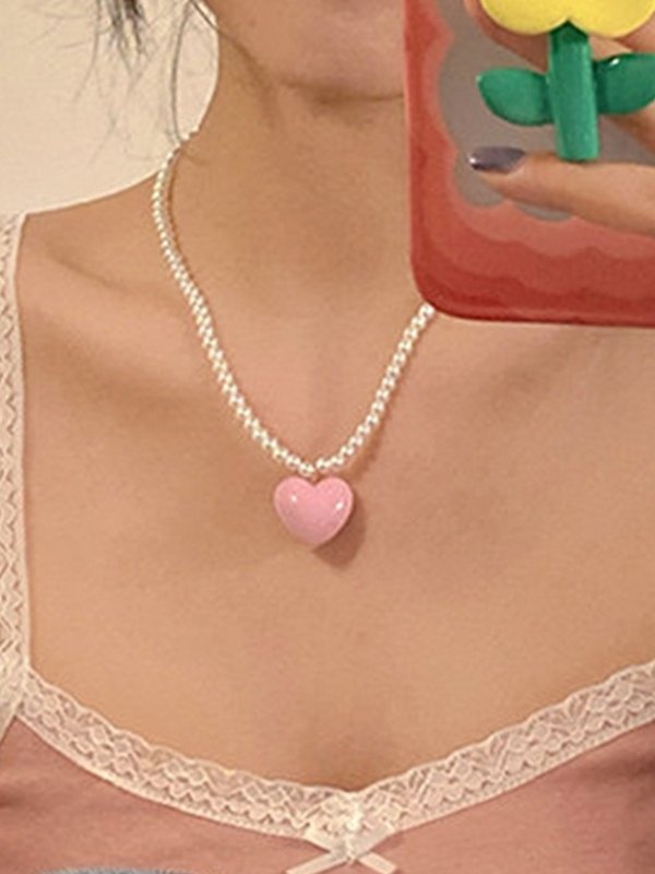 Acryl-Herz-Charme-Faux-Perlen-Halskette