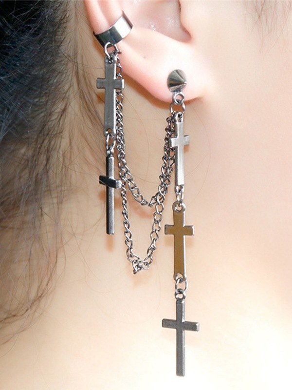 Kettenverzierter Kreuz-Tropfenohrring