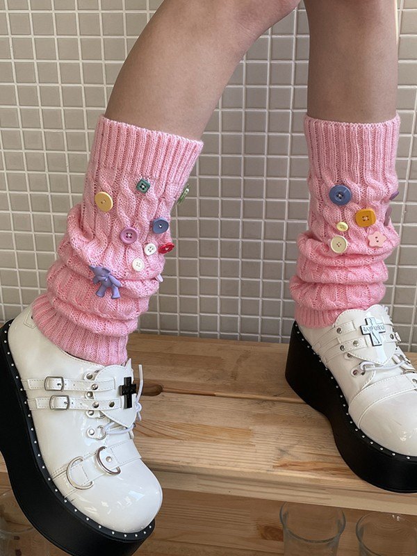 Knopfverzierter Zopfmuster-Beinwärmer