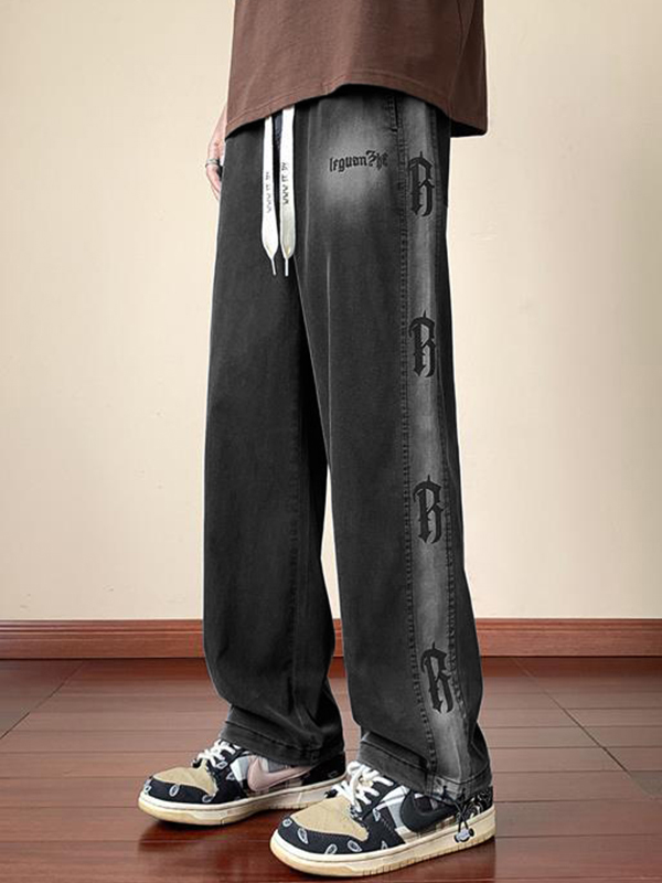 Herren-Jeans mit geradem Bein und Kordelzug im Vintage-Print