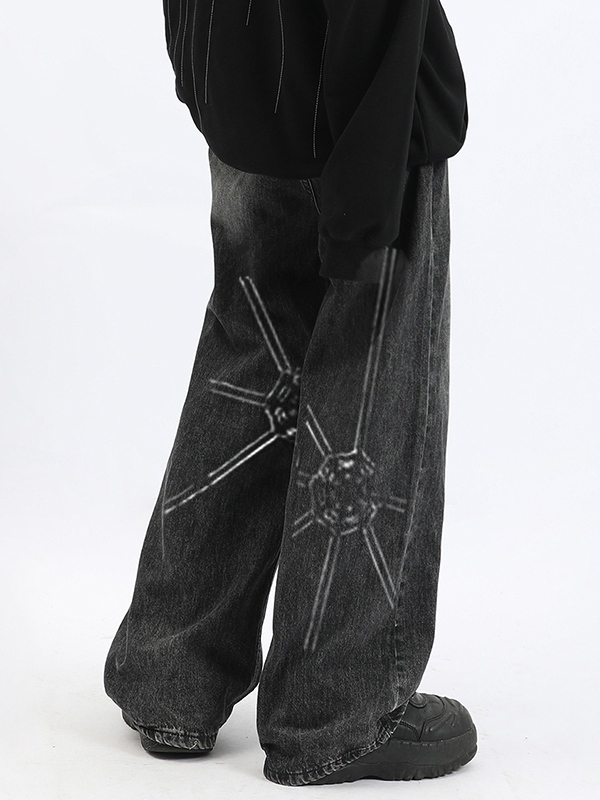 Lose Herrenjeans mit verwaschenem Spinnennetz-Print