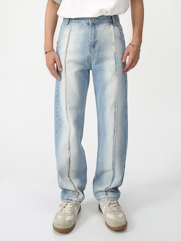 Herren-Jeans mit geradem Bein aus verwaschenem Denim mit Nähten