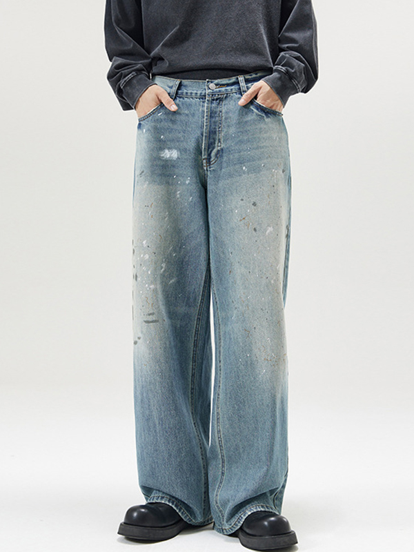 Lockere Jeans mit weitem Bein und handbemalten Kontrastfarben