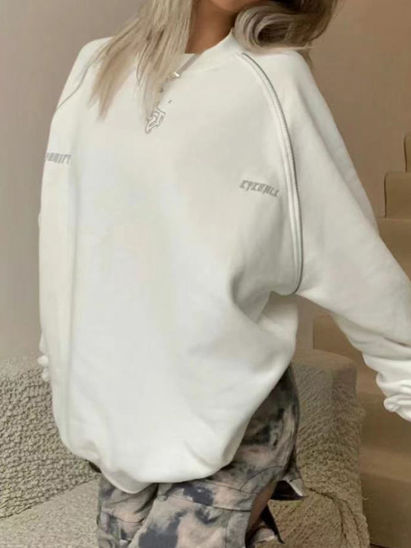 Patchwork-Sweatshirt mit Stickerei und Reißverschluss und Reißverschluss