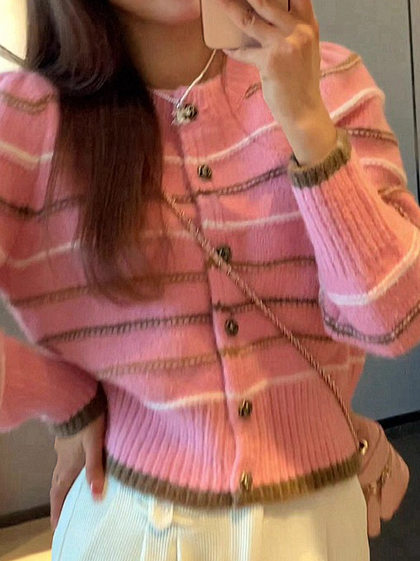 Kontrastfarben gestreifter Kurzstrick-Cardigan