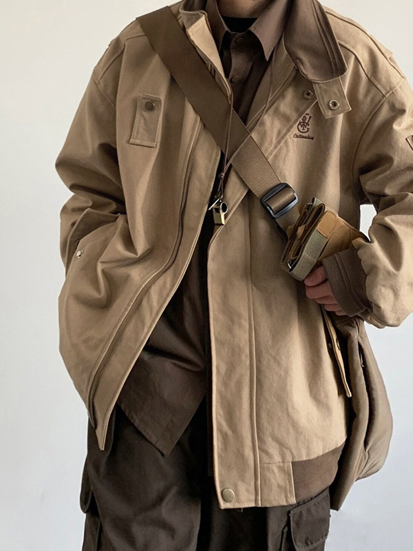 Herren-Spleißjacke mit Vintage-Stickerei und Reverskragen