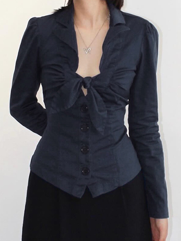 Vintage Holzohrring V-Ausschnitt Langarmhemden