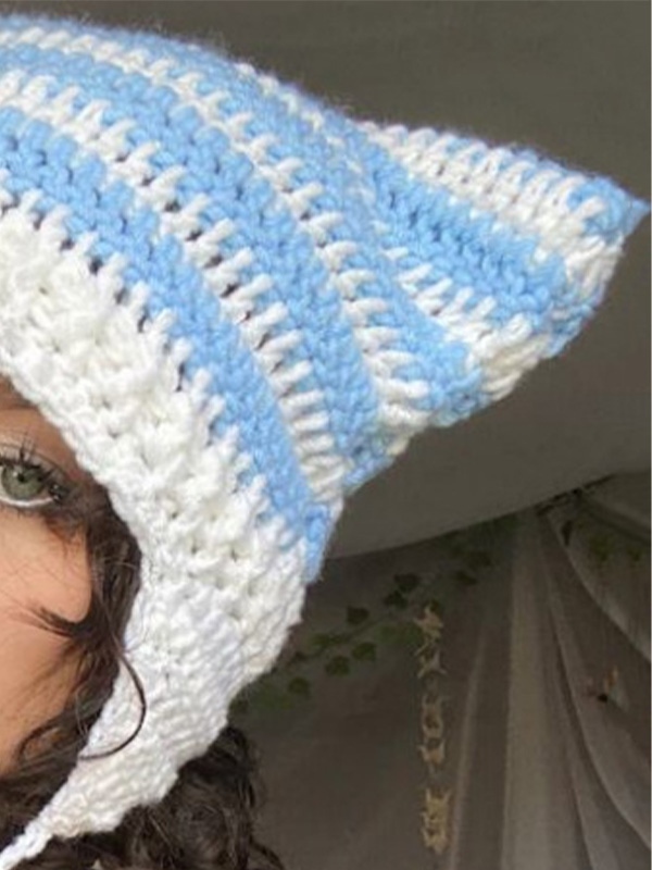 Handgefertigte Strickmütze mit Katzenohrstreifen