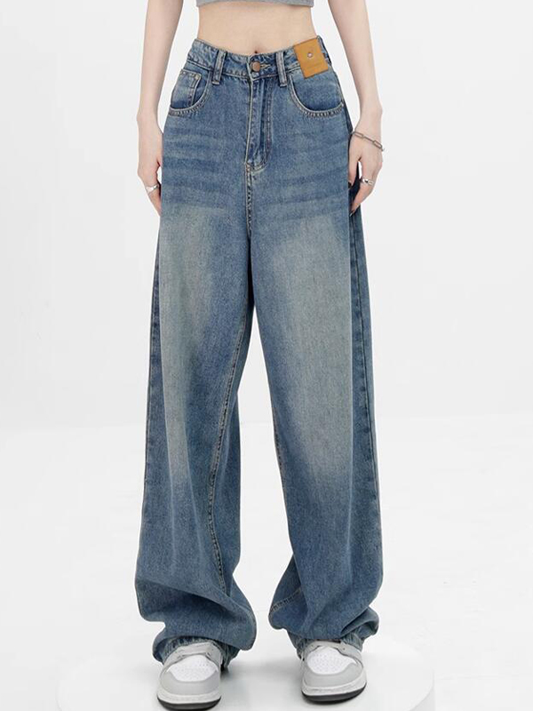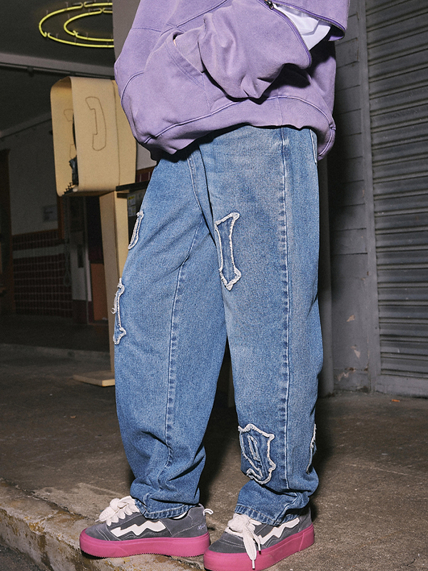 Herren-Jeans mit geradem Bein und Buchstaben-Patch-Stickerei