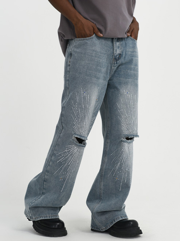 Zerrissene Jeans mit geradem Bein und Feuerwerk-Strassmuster für Herren