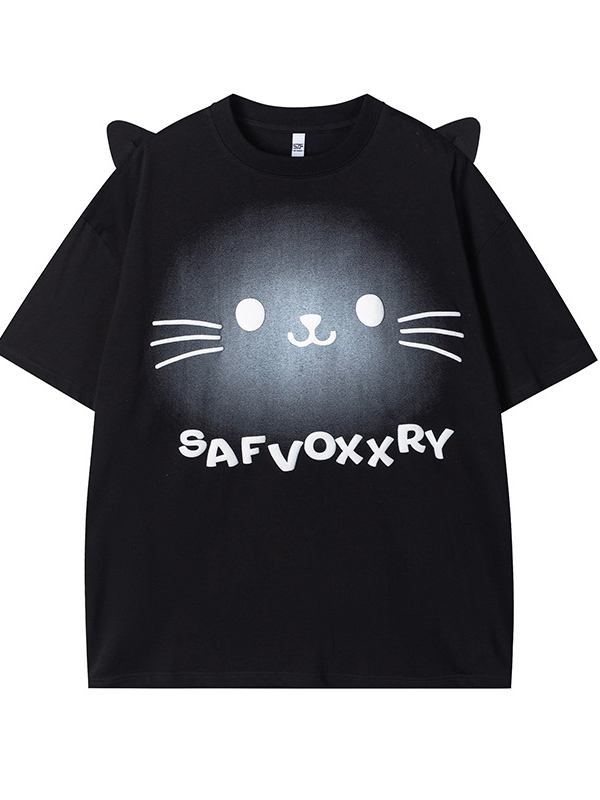 Übergroßes kurzärmliges T-Shirt mit Katzen-Print