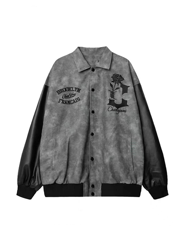 Herren-Lederspleißjacke mit Batik-Stickerei