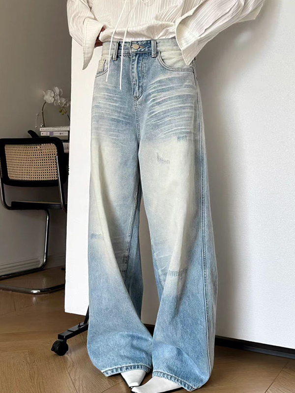 Verwaschene, zerkratzte und abgenutzte Boyfriendjeans