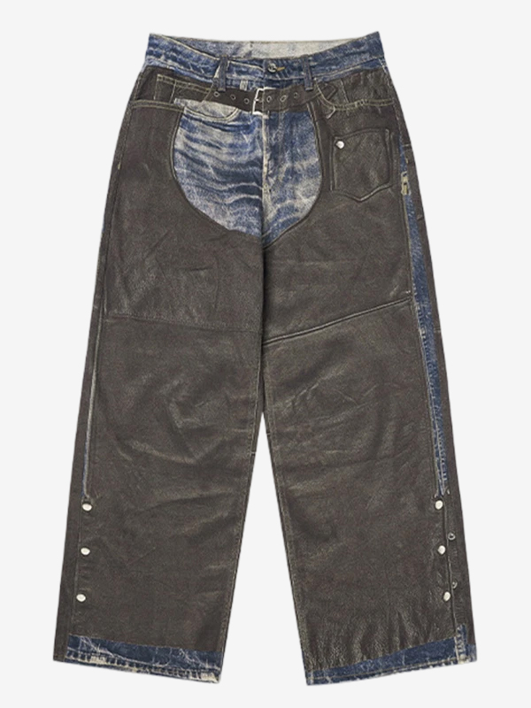 Jeans im Retro-Look mit Patchwork-Print aus Kunstleder