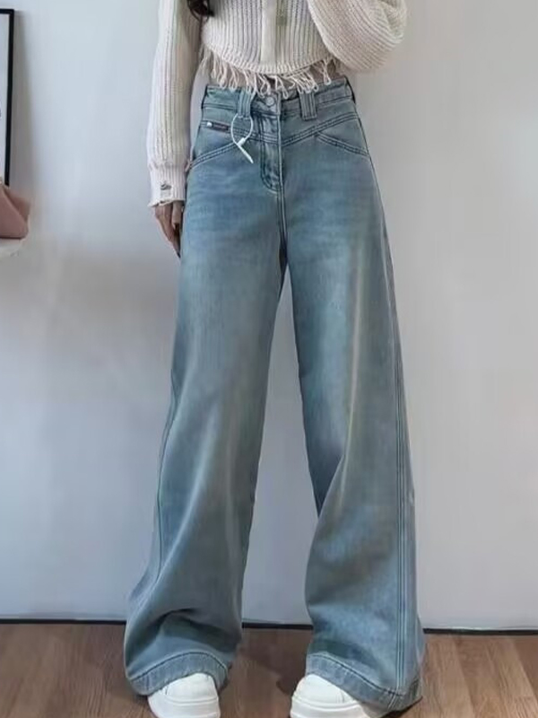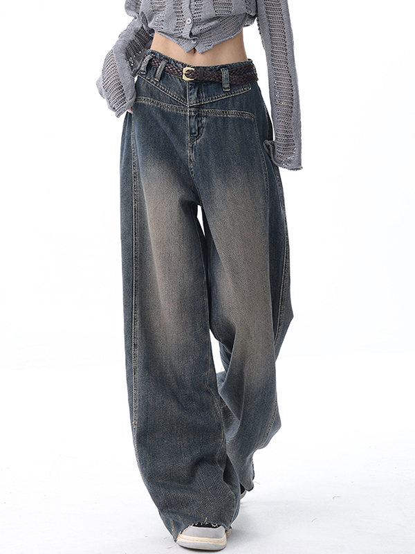 Verwaschene Jeans mit weitem Bein und Raw Edge-Details