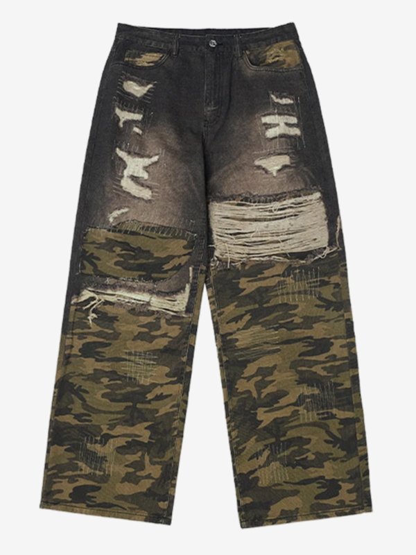 Unisex-Jeans mit Patchwork-Print im Camouflage-Stil