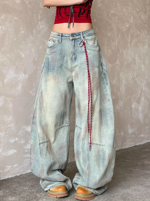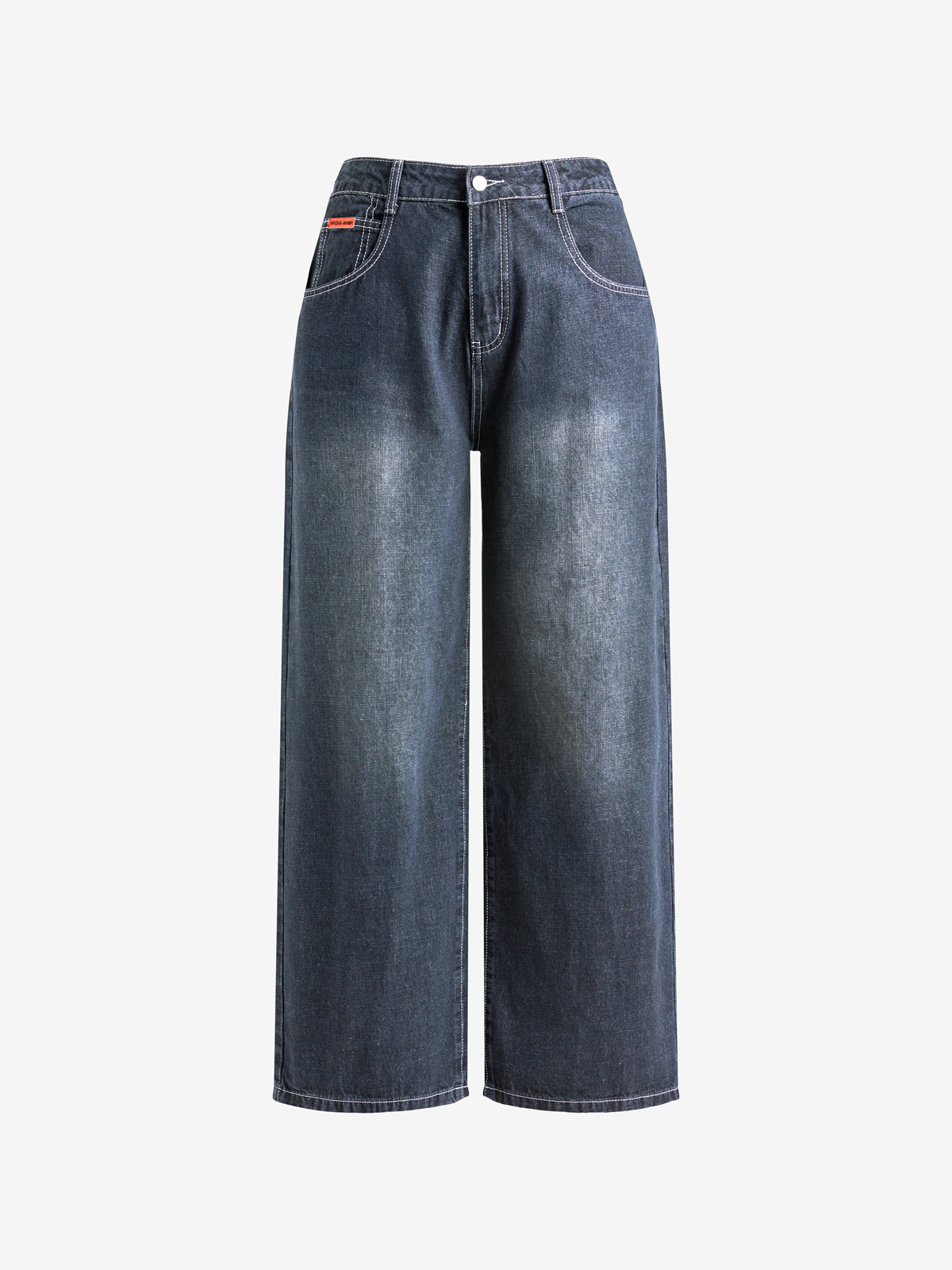 Vintage-Stickerei-Jeans mit niedrigem Bund und ungesäumtem Rand