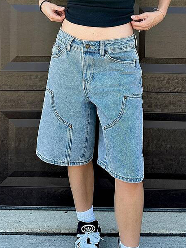 Niedrig geschnittene Denim-Bermudashorts