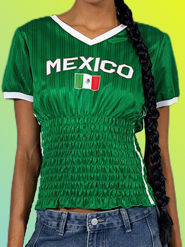 Retro Plissee V-Ausschnitt Langarm