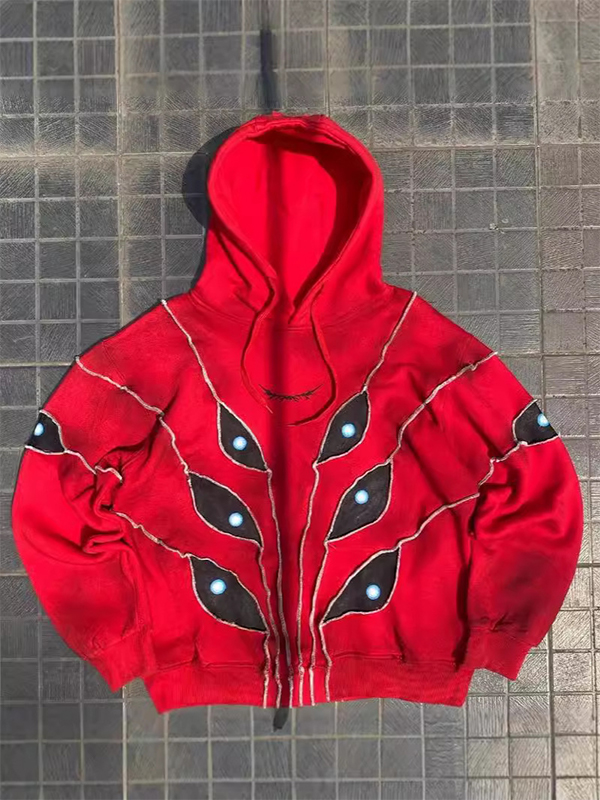 Bedruckter, übergroßer Kapuzenpullover für Herren mit Reißverschluss