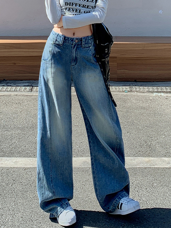 Lockere Vintage-Jeans mit verwaschener Bügelfalte