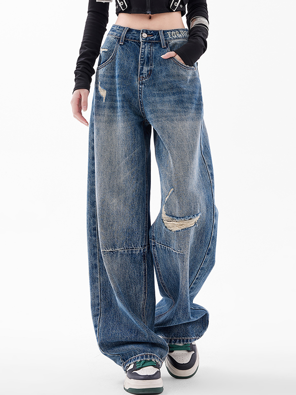 Vintage-Stickerei-Jeans mit niedrigem Bund und ungesäumtem Rand