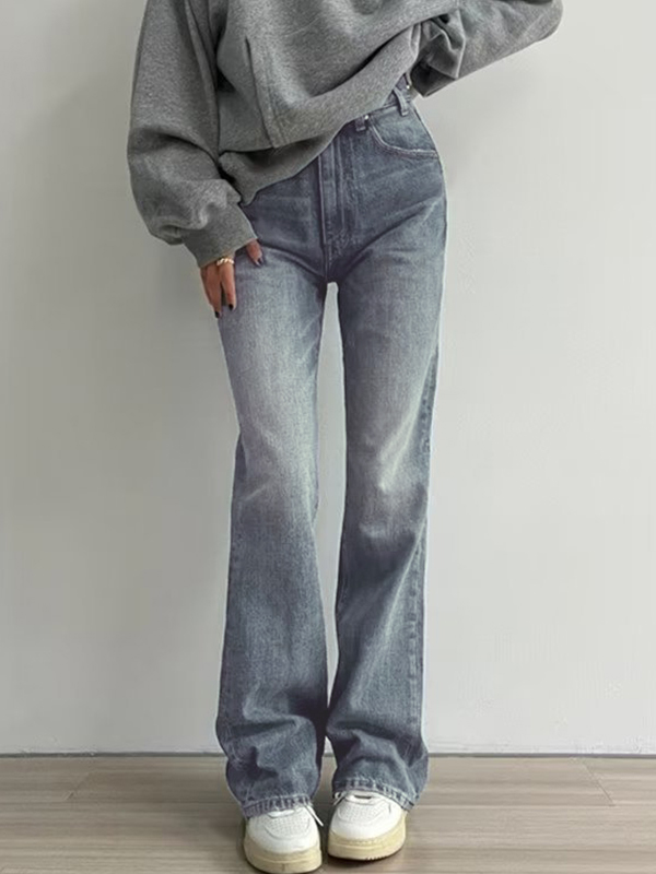 Vielseitige Vintage-Jeans in Blau mit hoher Taille und schmaler Passform