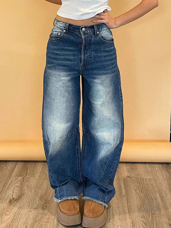Weite Jeans mit ausgewaschenem Saum und weitem Bein