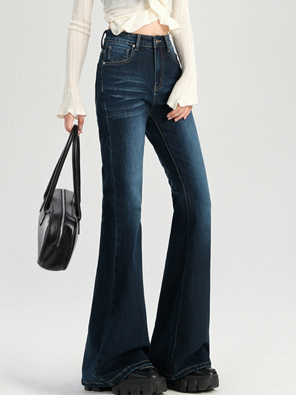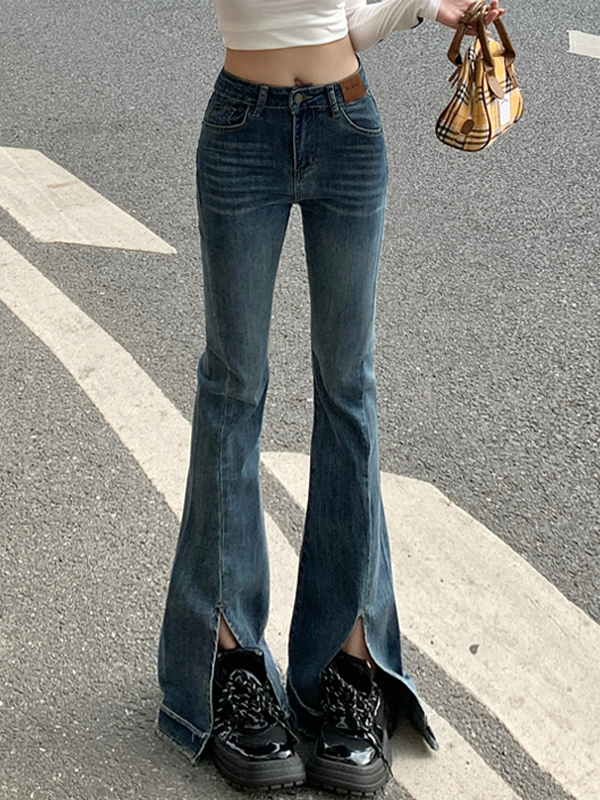 Schlankmachende Flare-Jeans mit Schlitz und leicht ausgestelltem Bein