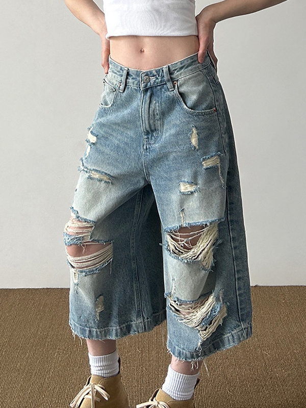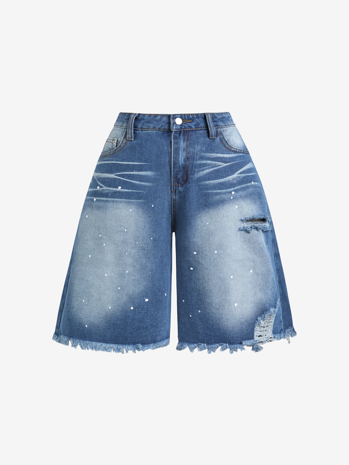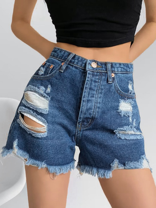 Zerrissene Burr-Denim-Shorts mit hoher Taille