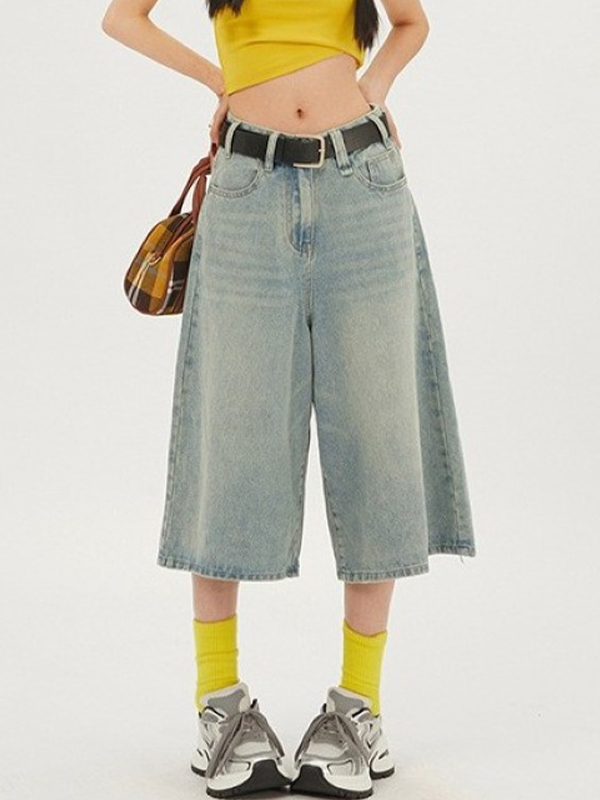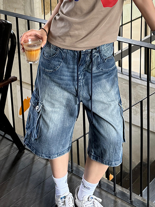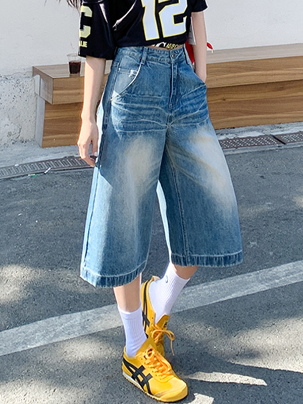 Slim Fit Jeansshorts im Retro-Waschungsdesign