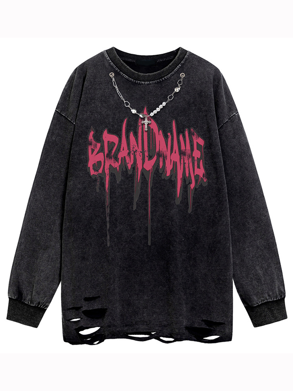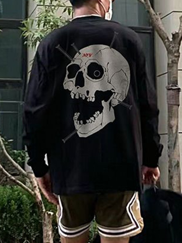 Langärmliges Herren-T-Shirt mit Totenkopf-Print im amerikanischen Stil