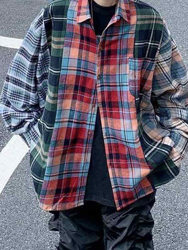 Herren-Bluse mit Vintage-Karomuster und Splice-Langarm