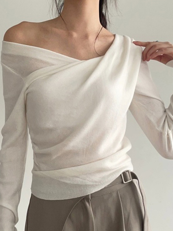 Schulterfreies, unregelmäßiges Langarm-T-Shirt