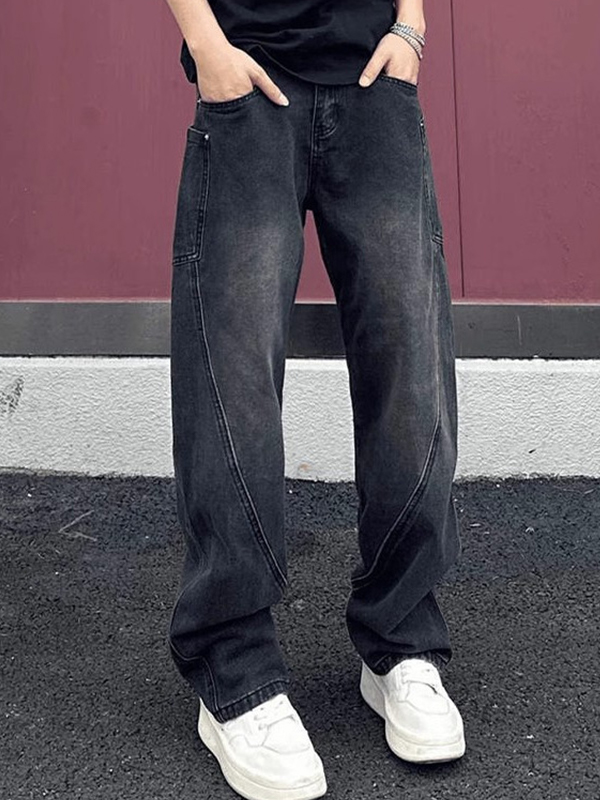 Herren-Jeans mit geradem Bein aus verwaschenem Denim mit Nähten