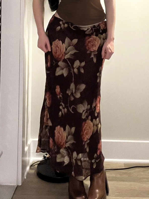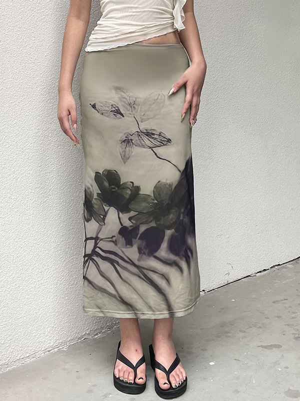 Maxirock im Retro-Stil mit Tintendruck im chinesischen Stil