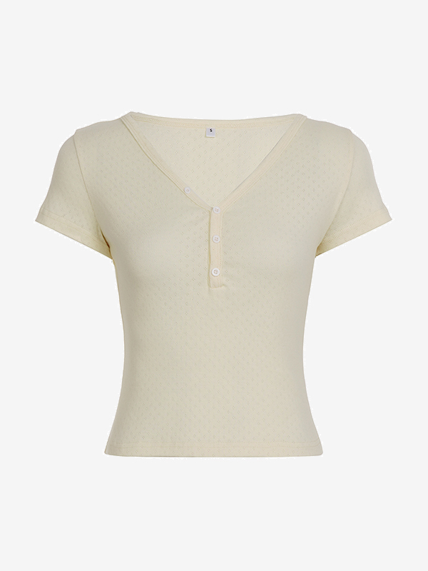 Strukturierter V-Ausschnitt, kurze Ärmel