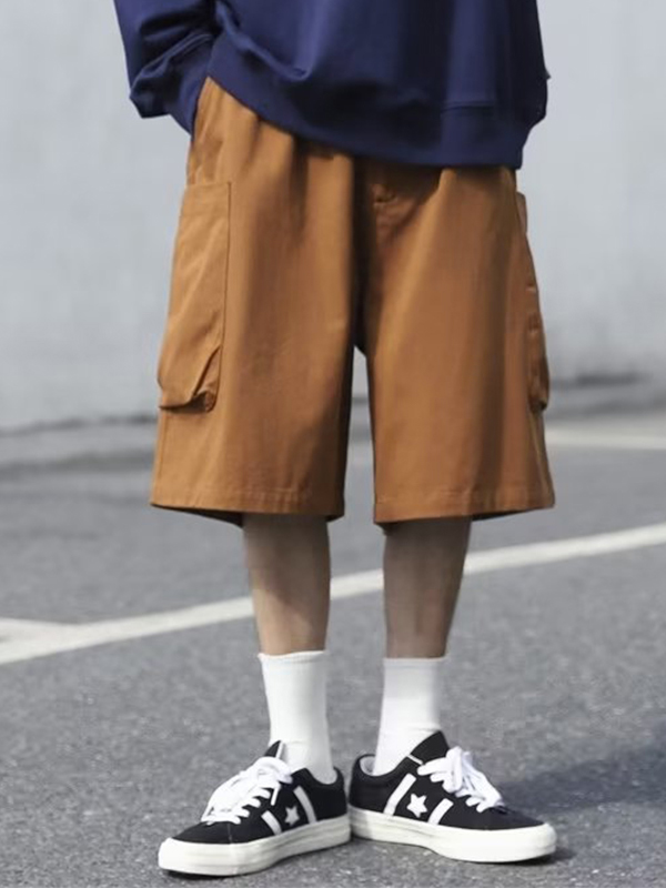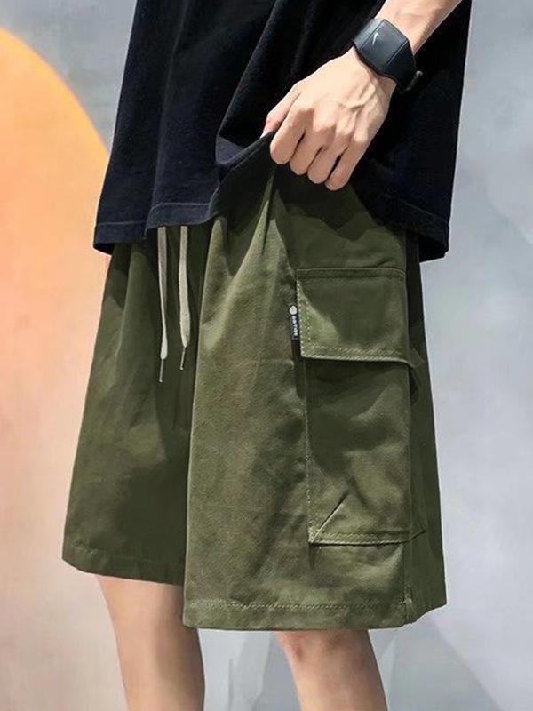 Einfarbige, lockere Cargo-Shorts für Herren mit mehreren Taschen