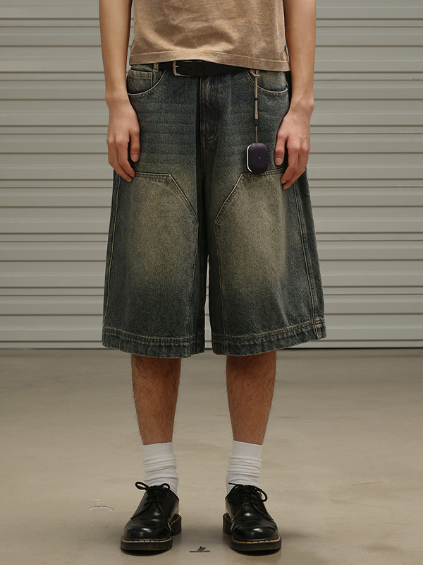 Lockere Shorts aus gewaschenem Vintage-Denim für Herren