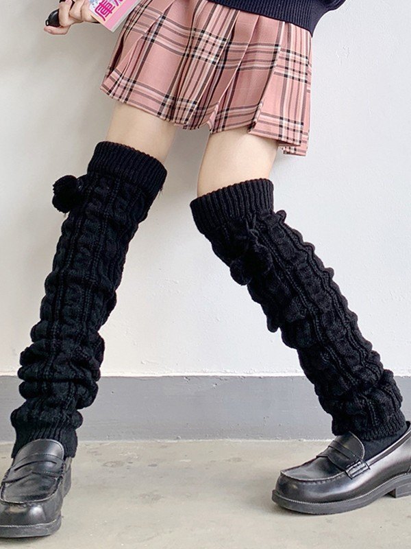 Beinwärmer mit Pompom-Dekor und Zopfmuster